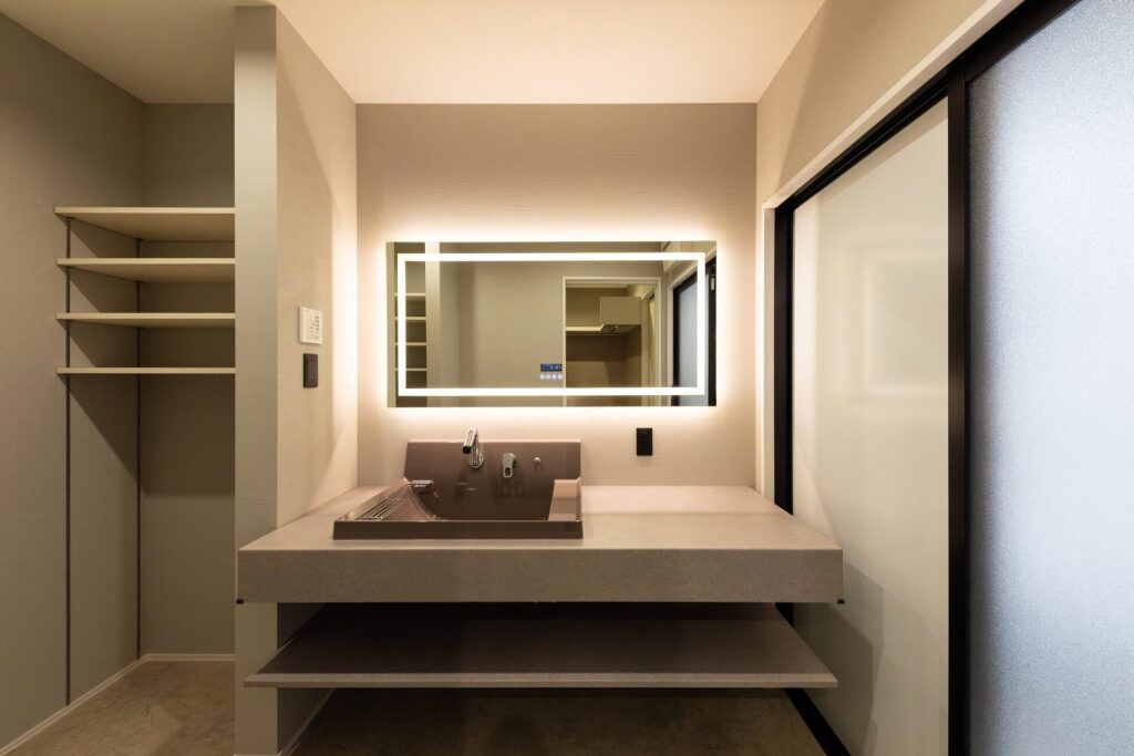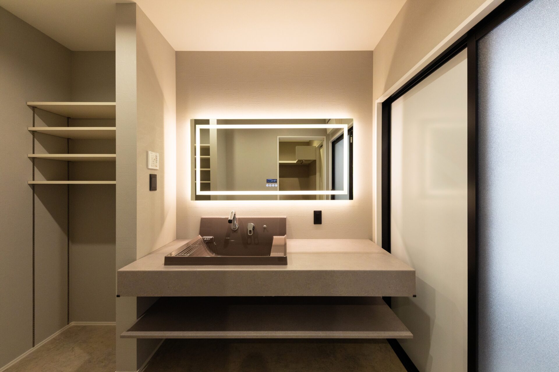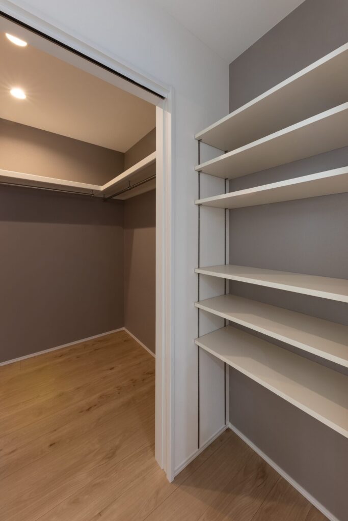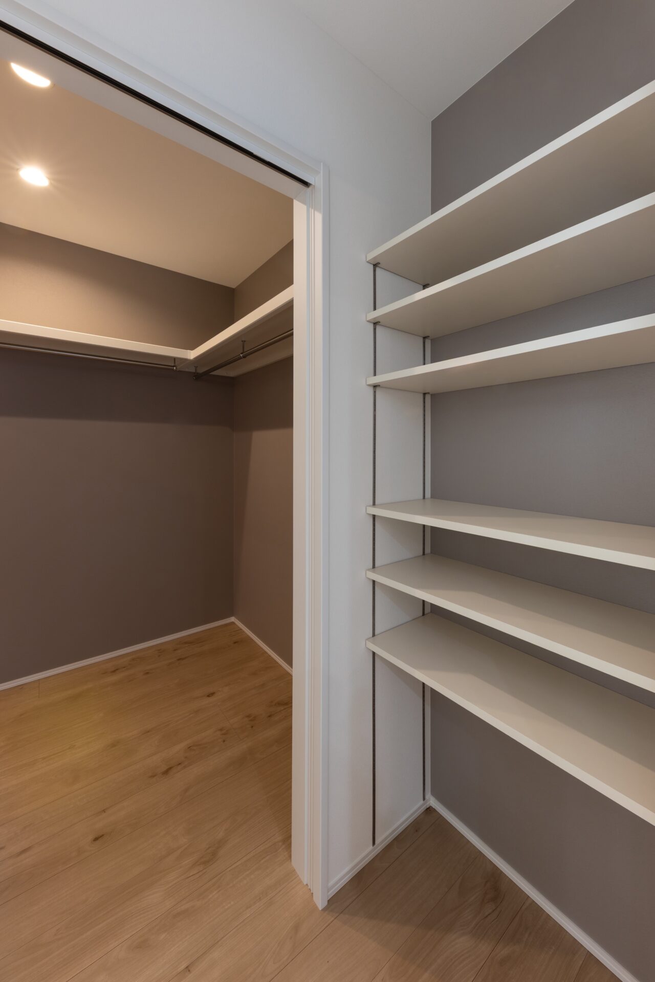 キッチンからパントリー→ファミリークローゼット→ユーティリティと洗面室に繋がっています